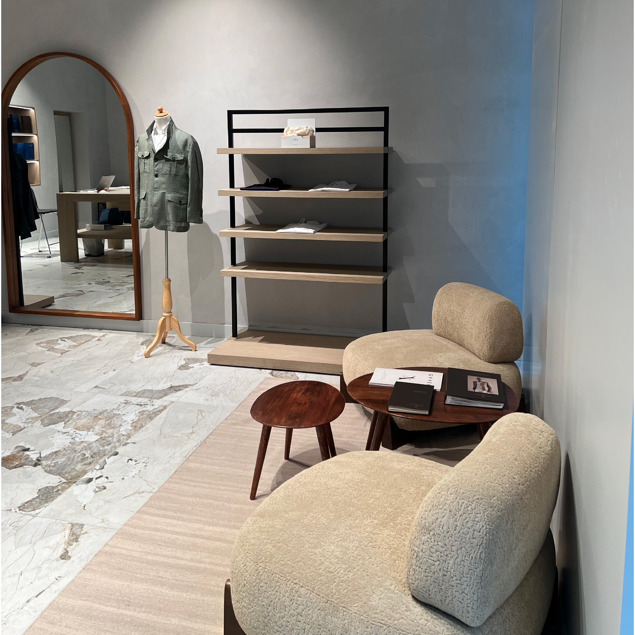 Our garments embody a calm, ethical, and humanistic philosophy, tailored for those who appreciate purposeful elegance. Experience our first boutique at Al Aali Mall, where you’ll enjoy a serene and intimate setting as you explore fabrics, fit, and personal expression.